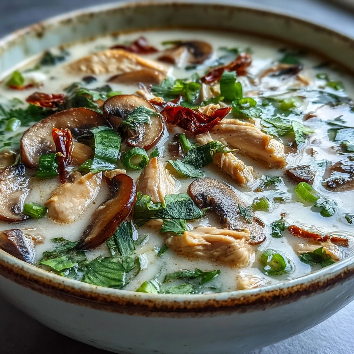 Tom Kha Gai invites you to slow down in a way that quick meals rarely do. There's a difference between eating this soup and experiencing it—the spoon should move deliberately, the bowl cradled in both hands, each sip allowed to linger on your tongue long enough to recognize the layers. I've noticed that people's conversations naturally quiet and deepen when they're eating this, like the soup creates permission to be present.