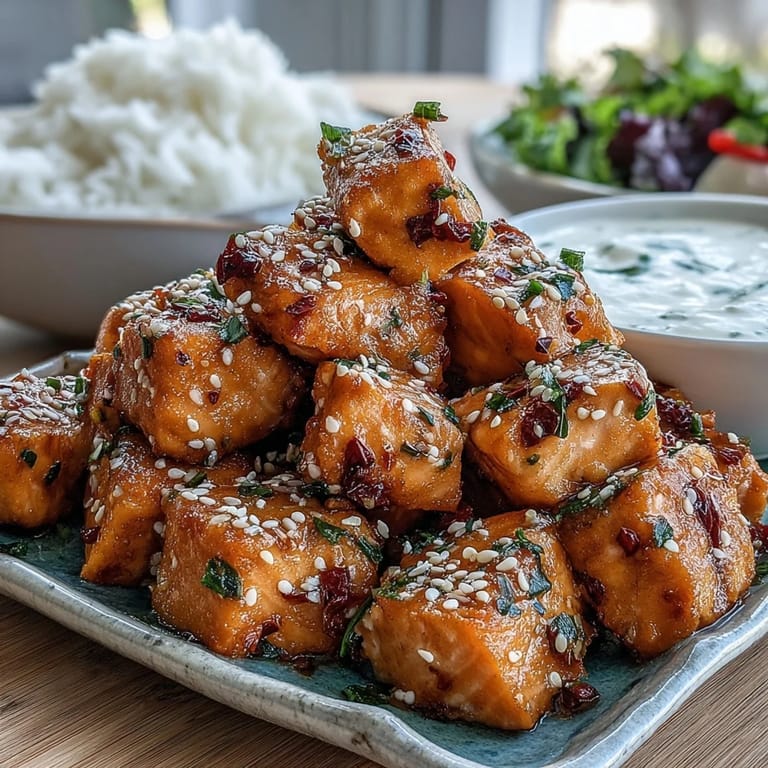 - Toss the warm salmon bites in that gorgeous sauce until every piece is coated, then serve immediately while they are still hot