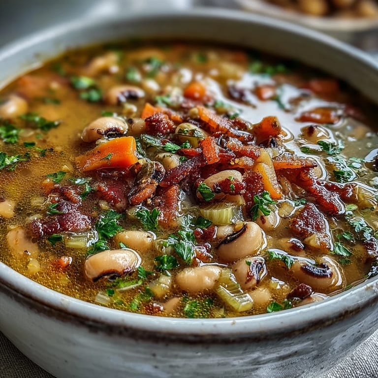 Pin It My grandmother used to make this soup on the first cold snap of autumn, and the smell of bacon fat hitting the pot was basically a dinner bell for the whole neighborhood. Years later, I realized she'd been teaching me something without saying much at all—that the best comfort food doesn't need to be complicated, just honest. There's something about black-eyed peas that feels like home, especially when they're swimming in a broth that tastes like smoke and care. I've made this soup dozens of times since, and it never fails to turn a random Tuesday into something worth sitting down for.