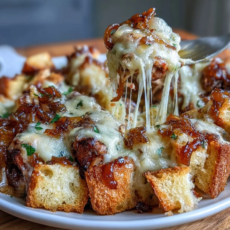 Pin It A friend texted me a photo of French onion soup one winter evening, and I stared at it thinking, why not turn this into something more substantial? That night, I pulled chicken thighs from the freezer and started caramelizing onions, letting them cook down until they turned mahogany and sweet. By the time the kitchen smelled like heaven, I knew I'd stumbled onto something better than soup—a one-pan dinner that felt like comfort wrapped in crispy sourdough.