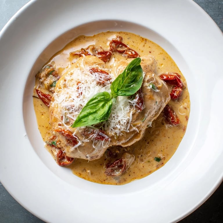 Pin It The first time I made this dish, I was trying to impress someone who claimed they'd tasted everything. I had maybe thirty minutes and a vague memory of a creamy tomato sauce from an Italian restaurant in the city. Standing at the stove with four chicken breasts and a jar of sun-dried tomatoes, I realized I was either going to create something memorable or completely botch it. What emerged was this silky, rich sauce that clung to the chicken like it belonged there all along, and the final flourish of Parmesan dusted on top looked so elegant I almost didn't want to eat it.