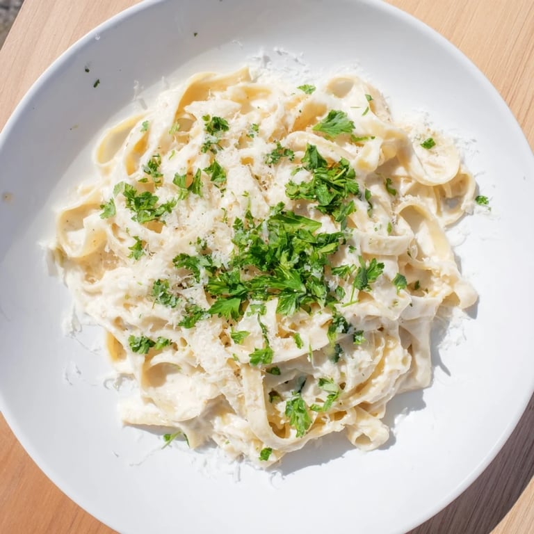 - Plate the pasta immediately while it's hot, and finish with a sprinkle of fresh parsley and extra Parmesan if you're feeling generous. Serve it with a little black pepper on top for contrast.