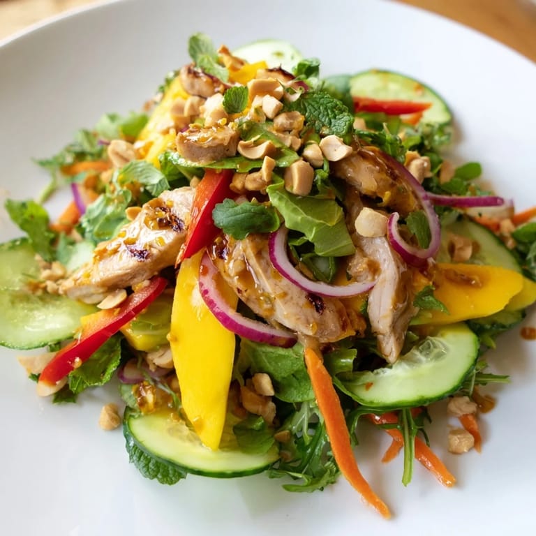 Pin It There's something magical about the first time you bite into a mango chicken salad on a humid afternoon, when the sweetness of ripe mango crashes against the heat of chili and lime, and suddenly you're transported somewhere brighter and more alive than your kitchen. I discovered this dish entirely by accident, trying to use up a perfectly ripe mango before it turned, and it's become the salad I make whenever I want to feel like I'm sitting at a small table in Bangkok, even if I'm just in my backyard. The beauty of it is how quickly everything comes together, and how forgiving it is of small mistakes.
