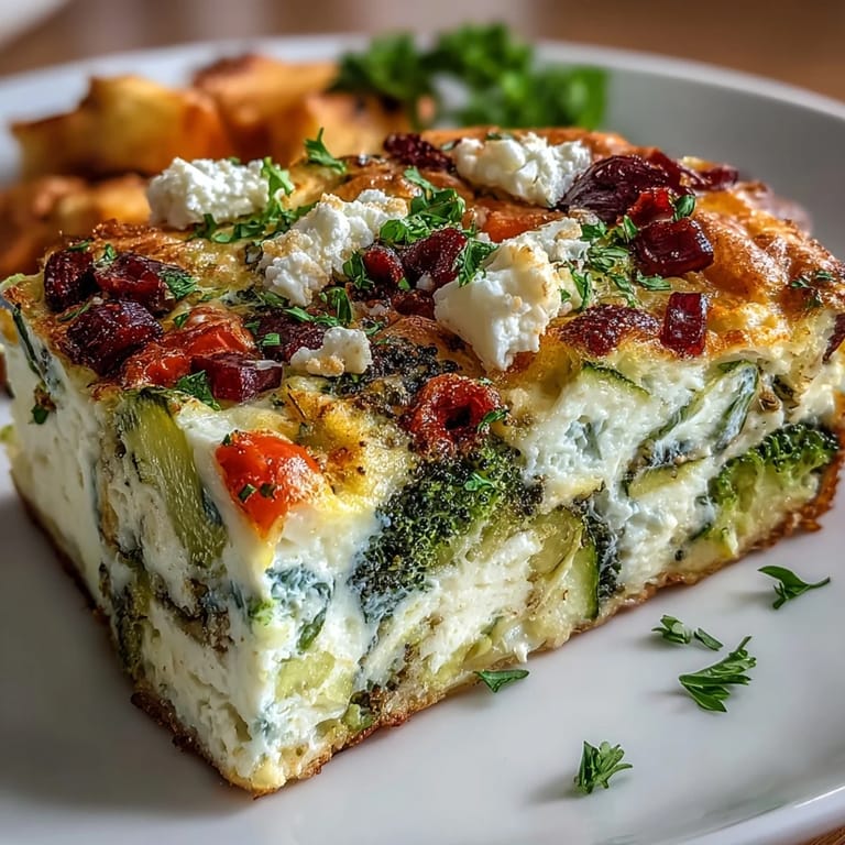 This frittata is perfect fresh from the oven, but it's equally good at room temperature, which makes it brilliant for meal prep or taking to a picnic. I like serving it with a simple side salad dressed in lemon vinaigrette to cut through the richness, or some whole grain toast if I'm feeling like I need more substance. Leftovers keep beautifully in the fridge for up to four days, and you can reheat a slice in the toaster oven or microwave without it turning rubbery.